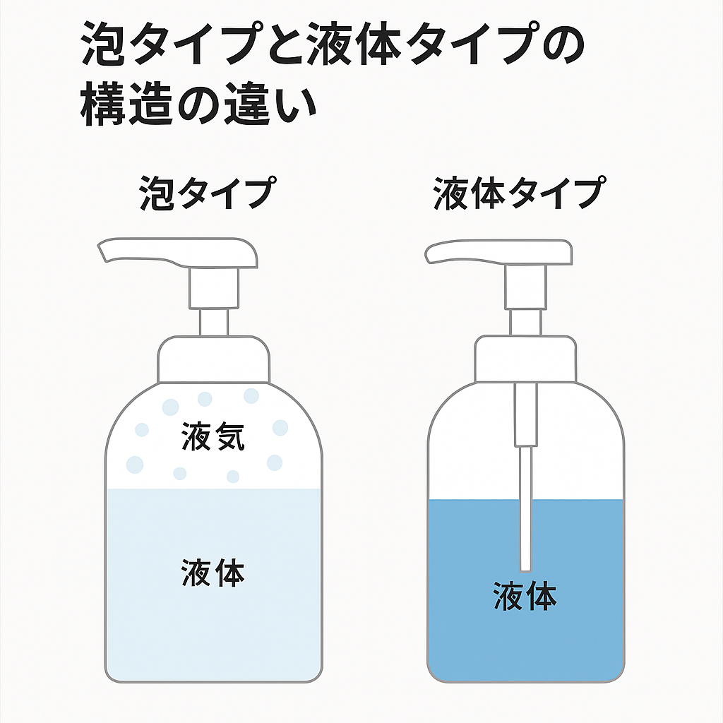 実は、液体タイプと泡タイプの大きな違いは「濃度」と「ポンプの仕組み」にあります。