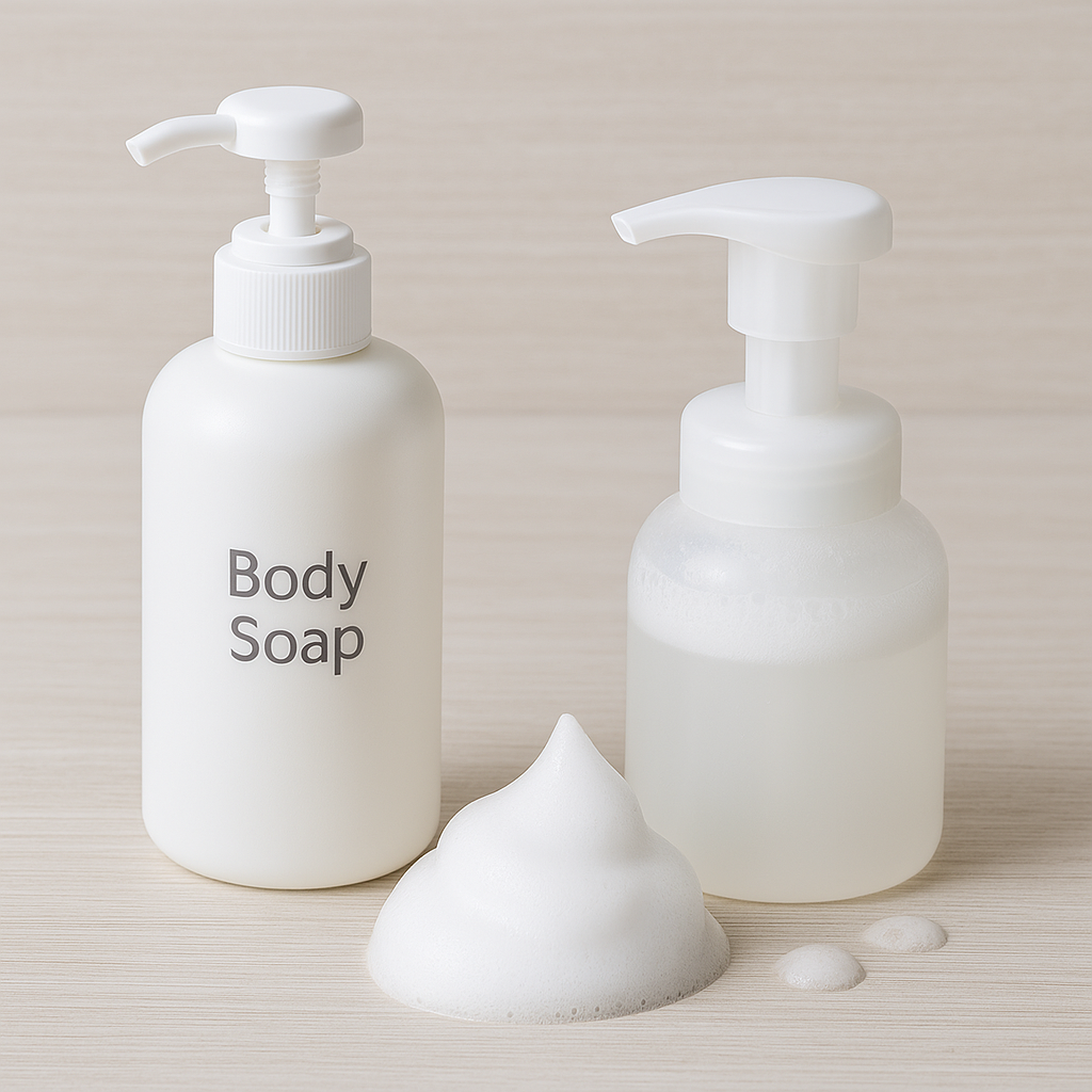 実は、液体タイプと泡タイプのボディソープは見た目が似ていても、成分の濃さやポンプの仕組みがまったく違うんです。